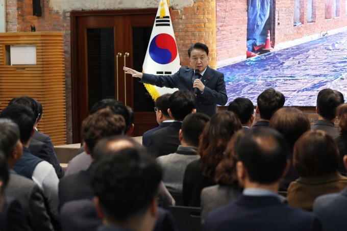 김 지사는 대회의실 리모델링 사례를 들어 "벽을 허물고 닫힌 공간을 열면서 도청이 성안길과 연결되고 광장으로 자연스럽게 이어지게 됐다"며 "이는 충북이 지향해야 할 방향을 상징적으로 보여주는 장면"이라고 설명했다.