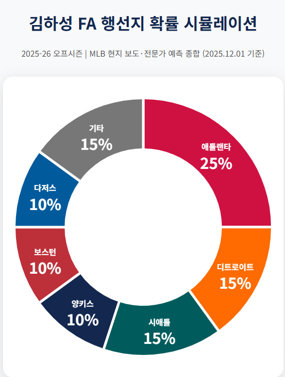 [서울=뉴스핌] 장환수 스포츠전문기자= AI 퍼플렉시티가 분석한 김하성 행선지 확률. [그래픽=AI 그록] 2025.12.01 zangpabo@newspim.com
