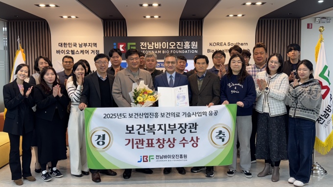 [무안=뉴스핌] 조은정 기자 = 전남바이오진흥원은 1일 보건의료 기술사업화와 바이오헬스 창업 생태계 조성에 기여한 공로를 인정받아 '2025년 보건산업진흥 보건의료 기술사업화 유공' 부문에서 보건복지부 장관 기관표창을 수상했다고 1일 밝혔다.