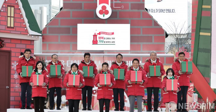 [서울=뉴스핌] 양윤모 기자 = 사회복지공동모금회가 주최하는 '희망 2026나눔캠페인'의 시작을 알리는 사랑의 열매 출범식이 1일 오후 서울 광화문광장에서 개최된 가운데, 참석자들이 온도탑 점등 퍼포먼스를 하고 있다. 행사에는 정은경 보건복지부 장관,오세훈 서울시장,국회 보건복지위원장, 김병준 사회복지공동모금회 회장,양종희 KB금융지주 회장, 함영주 하나금융그룹 회장, 진옥동 신한금융지주 회장, 임종룡 우리금융그룹 회장,채시라 사랑의열매 홍보대사, 김재록 서울 사랑의열매 회장,백은별 서울 사랑의열매 최연소 아너소사이어티 회원 등이 참석했다. 사랑의열매 사회복지공동모금회는 "행복을 더하는 기부, 기부로 바꾸는 내일"을 슬로건으로 12월 1일부터 내년 1월 31일까지 62일간 전국 17개 시·도에서 4500억원을 모금한다. 2025.12.01 yym58@newspim.com