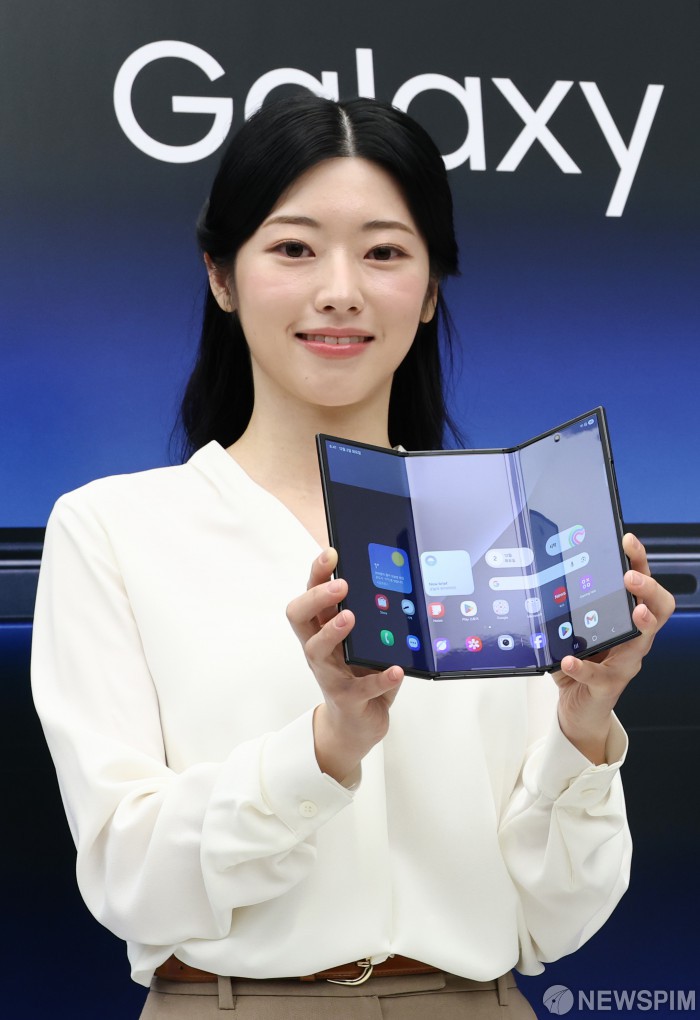 [서울=뉴스핌] 최지환 기자 = 2일 오전 서울 서초구 삼성 강남에서 열린 삼성전자 갤럭시 Z 트라이폴드 출시 미디어데이에서 모델들이 갤럭시 Z 트라이폴드를 선보이고 있다. 2025.12.02 choipix16@newspim.com