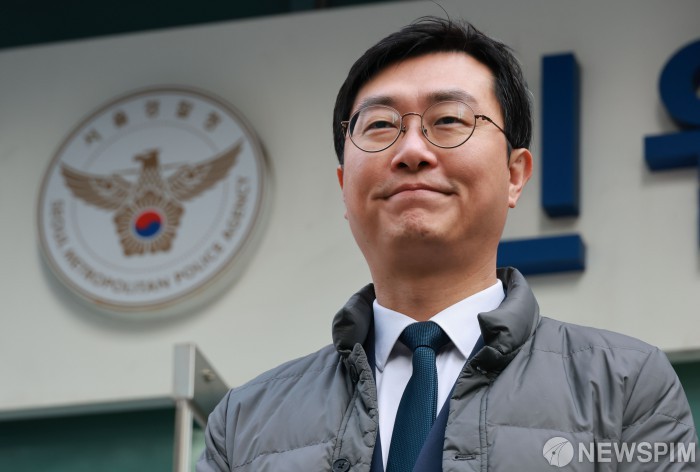 [서울=뉴스핌] 김학선 기자 = '성추행 의혹'에 휩싸인 더불어민주당 장경태 의원이 2일 오전 서울경찰청 민원실에서 자신을 성추행 의혹으로 고발한 고소인을 무고 혐의 등으로 맞고소한 후 취재진의 질문을 받고 있다. 2025.12.02 yooksa@newspim.com
