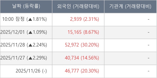 [표] 외국인ㆍ기관 순매매량 (단위 주)
