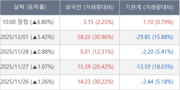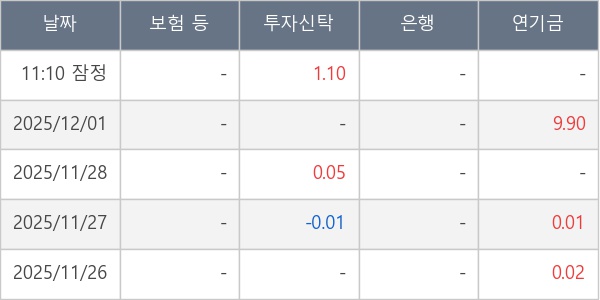 ※ 사모펀드 등 일부 기관의 순매매량은 표시되지 않음
