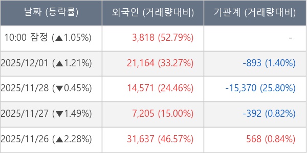 [표] 외국인ㆍ기관 순매매량 (단위 주)