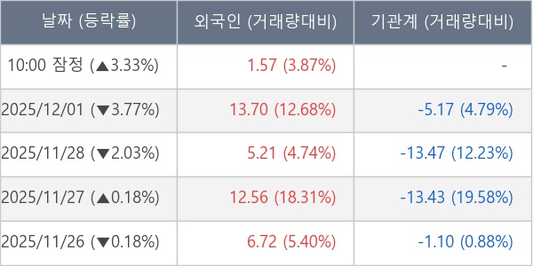 [표] 외국인ㆍ기관 순매매량 (단위 만주)