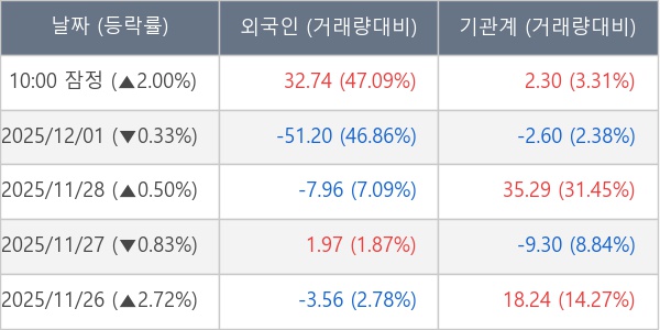 ※ 사모펀드 등 일부 기관의 순매매량은 표시되지 않음