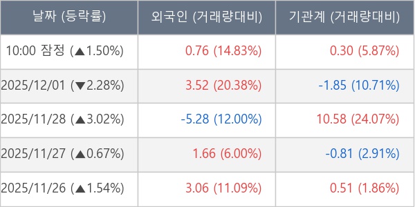 ※ 사모펀드 등 일부 기관의 순매매량은 표시되지 않음
