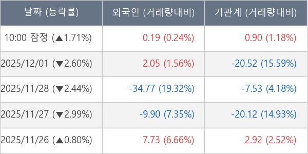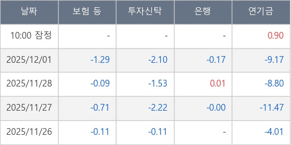 ※ 사모펀드 등 일부 기관의 순매매량은 표시되지 않음