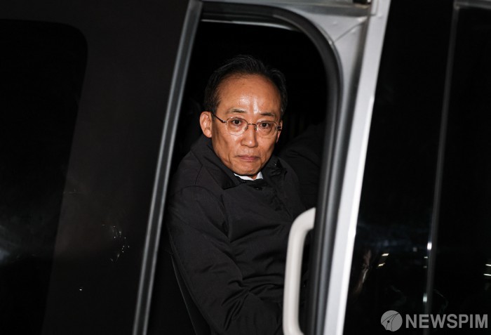 [서울=뉴스핌] 최지환 기자 = 국회의 12·3 비상계엄 해제 의결 방해 의혹을 받는 추경호 전 국민의힘 원내대표가 3일 새벽 서울 서초구 서울중앙지방법원에서 열린 영장실질심사(구속 전 피의자 심문)를 마치고 호송차량에 탑승해 있다. 2025.12.03 choipix16@newspim.com