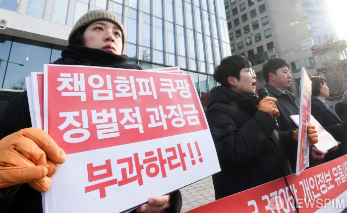 시민단체, 쿠팡 본사 앞에서 쿠팡 개인정보 유출 집단분쟁조정 신청 돌입 기자회견 개최