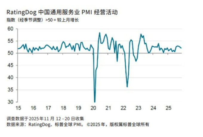중국의 민간 조사 기관인 레이팅독(루이팅거우, 瑞霆狗)은 중국 11월 서비스업 PMI(구매 관리자 지수)가 전달 대비 0.5포인트(P) 낮아진 52.1을 기록했다고 3일 발표했다.