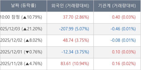 [장중수급포착] 스맥, 외국인/기관 동시 순매수… 주가 +10.79%