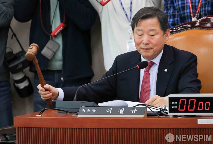 | [서울=뉴스핌] 윤창빈 기자 = 이철규 위원장이 4일 서울 여의도 국회에서 열린 산업통상자원중소벤처기업위원회 전체회의에서 의사봉을 두드리고 있다. 2025.12.04 pangbin@newspim.com |