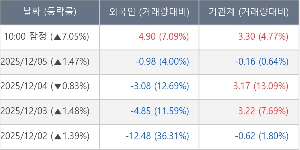 [장중수급포착] 미래에셋벤처투자, 외국인/기관 동시 순매수… 주가 +7.05%