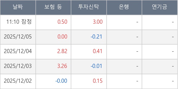 [표] 주요 기관별 순매매량 (단위 만주)