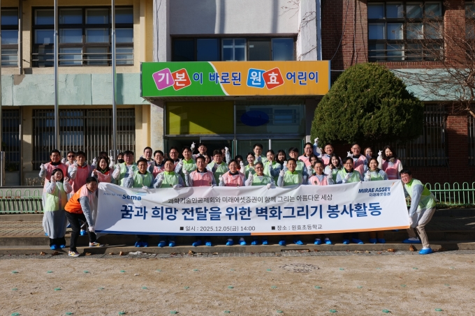 [서울=뉴스핌] 김가희 기자 = 미래에셋증권과 과학기술인공제회는 지난 5일 서울 용산구 원효초등학교에서 합동 벽화 그리기 봉사활동을 진행했다고 8일 밝혔다.
