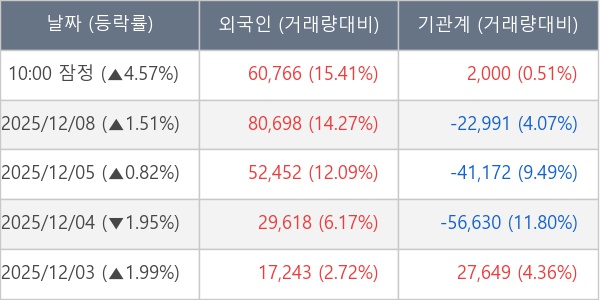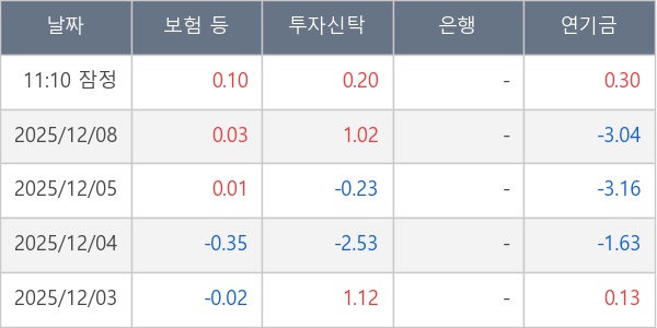 ※ 사모펀드 등 일부 기관의 순매매량은 표시되지 않음
