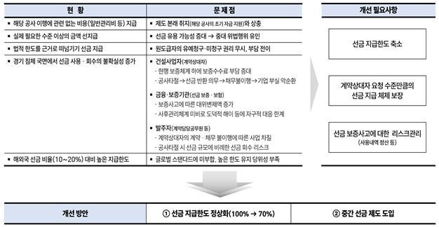 | 선금 지급한도 확대에 따른 문제점 및 개선 필요사항 [자료=한국건설산업연구원] |