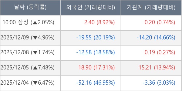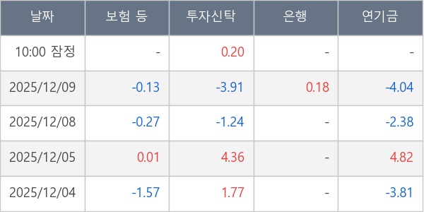 [표] 주요 기관별 순매매량 (단위 만주)