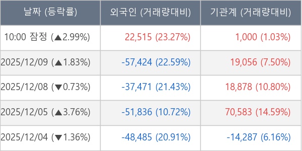 ※ 사모펀드 등 일부 기관의 순매매량은 표시되지 않음