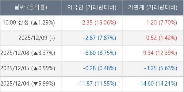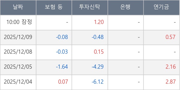 [표] 주요 기관별 순매매량 (단위 만주)