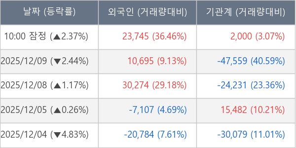 ※ 사모펀드 등 일부 기관의 순매매량은 표시되지 않음