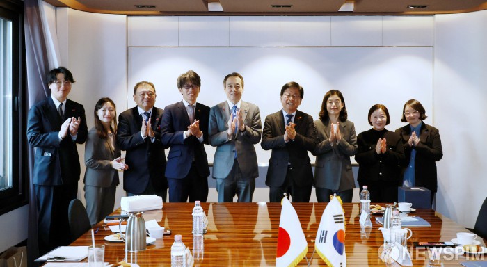 [서울=뉴스핌] 최교진 교육부 장관이 10일 서울 중구 더플라자 호텔에서 미즈시마 코이치 주한일본대사 등 관계자들과 기념촬영을 하고 있다. [사진=교육부] 2025.12.10 photo@newspim.com