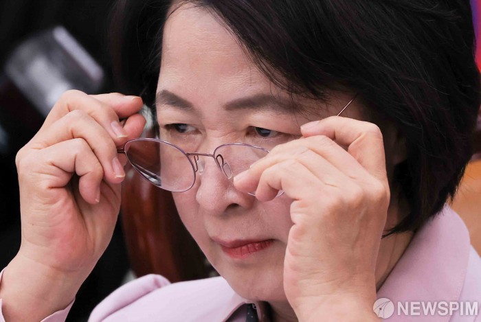 [서울=뉴스핌] 윤창빈 기자 = 추미애 국회 법제사법위원장이 10일 오전 서울 여의도 국회에서 열린 법제사법위원회 전체회의에서 안경을 쓰고 있다. 2025.12.10 pangbin@newspim.com