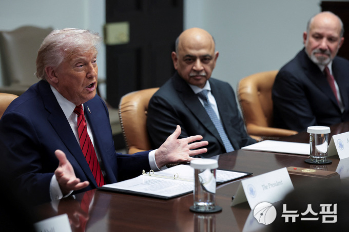 도널드 트럼프(사진 왼쪽) 미국 대통령이 2025년 12월 10일 미국 워싱턴 D.C. 백악관에서 IBM 최고경영자(CEO) 아르빈드 크리슈나 및 다른 재계 지도자들과 함께 원탁회의(라운드테이블)에 참석했다. [사진=로이터 뉴스핌]