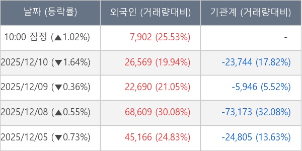 [표] 외국인ㆍ기관 순매매량 (단위 주)