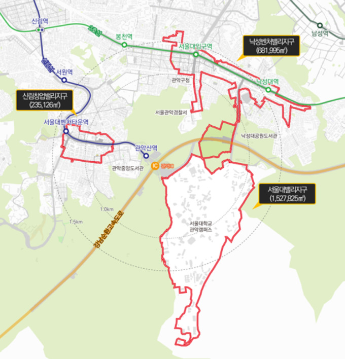 | 관악S밸리 R&D 벤처·창업 특정개발진흥지구 대상지 위치도. [관악구 제공] |