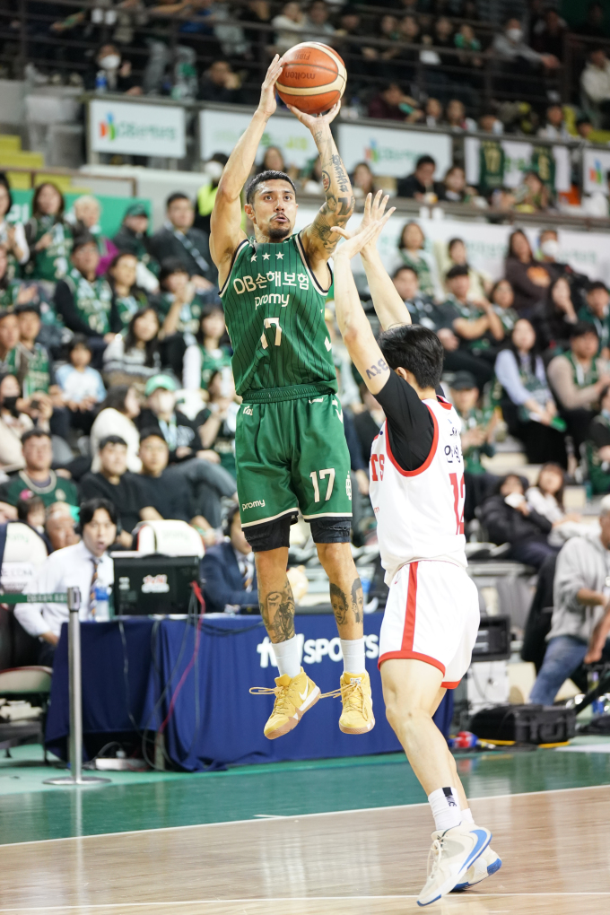 | [서울=뉴스핌] DB 이선 알바노가 11일 SK와의 홈경기에서 점프슛을 던지고 있다. [사진=KBL] |