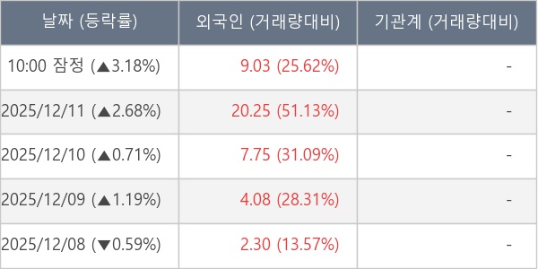 [표] 외국인ㆍ기관 순매매량 (단위 만주)