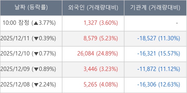 [표] 외국인ㆍ기관 순매매량 (단위 주)