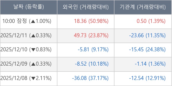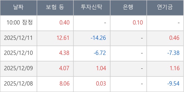 [표] 주요 기관별 순매매량 (단위 만주)