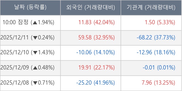 ※ 사모펀드 등 일부 기관의 순매매량은 표시되지 않음