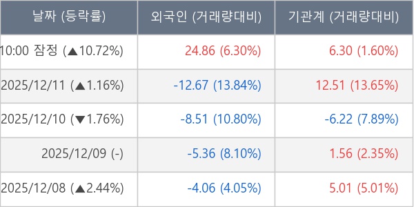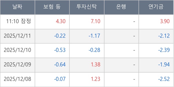 [표] 주요 기관별 순매매량 (단위 만주)