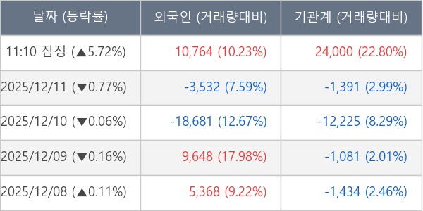 ※ 사모펀드 등 일부 기관의 순매매량은 표시되지 않음