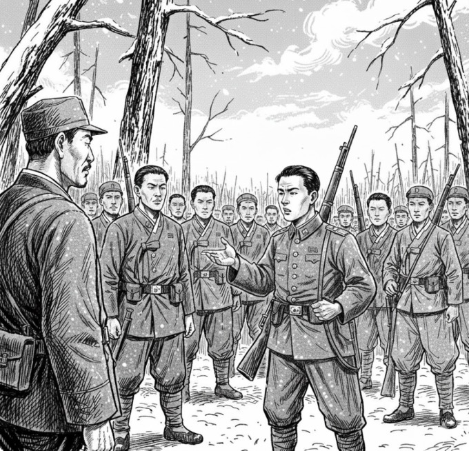 김성주: "(머리를 숙이며) 사령관님 말씀에 일리가 있습니다."