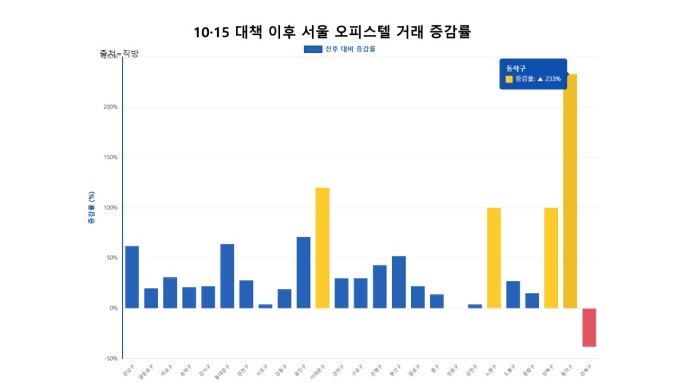지역별로는 증가율과 절대 거래량에서 서로 다른 양상이 나타났다. 증가율은 동작구(233%), 서대문구(120%), 노원·성북구(100%) 등에서 크게 확대된 반면, 실제 거래 규모는 강남구(128건), 영등포구(122건), 마포구(119건), 송파구(117건) 등 주요 업무지구와 도심권 오피스텔 밀집 지역을 중심으로 형성됐다.