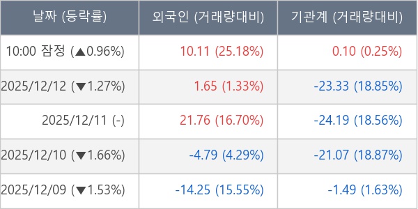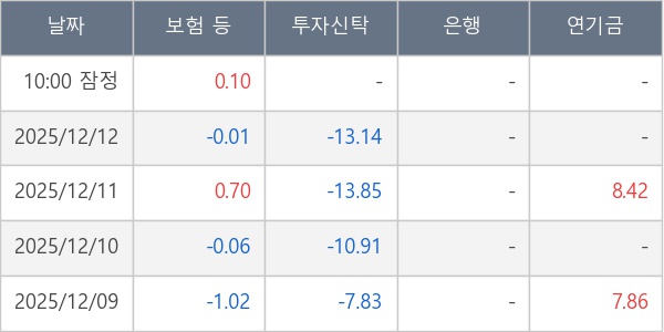 [표] 주요 기관별 순매매량 (단위 만주)