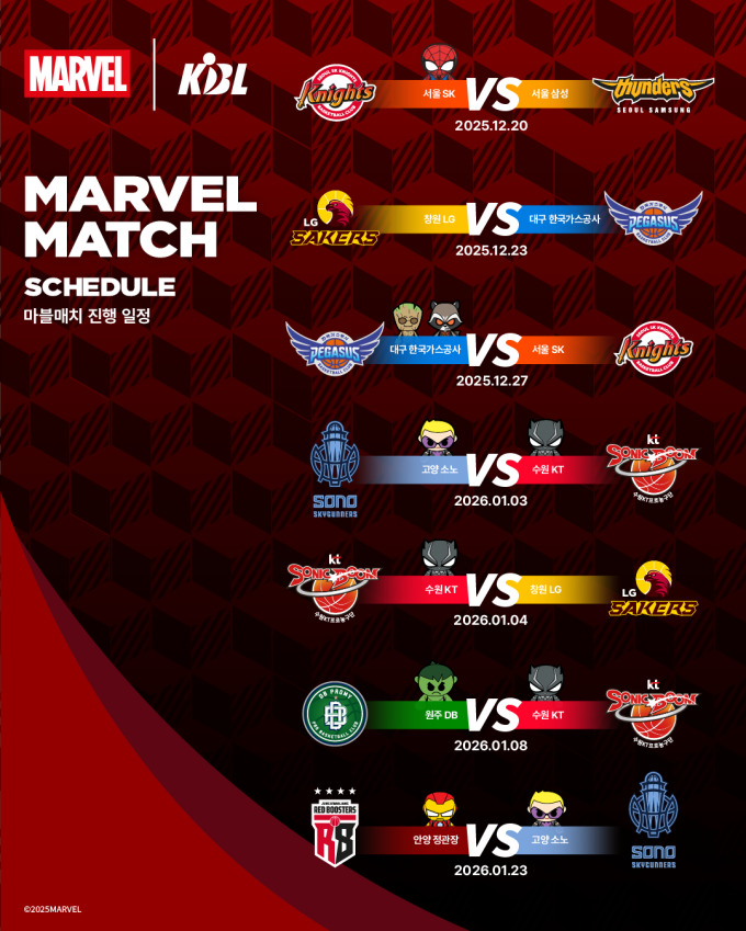 [서울=뉴스핌]이웅희 문화스포츠 전문기자=KBL이 월트디즈니 컴퍼니 코리아와 협업하여 마블 테마의 경기 이벤트 '마블 매치(MARVEL MATCH)'를 개최한다.