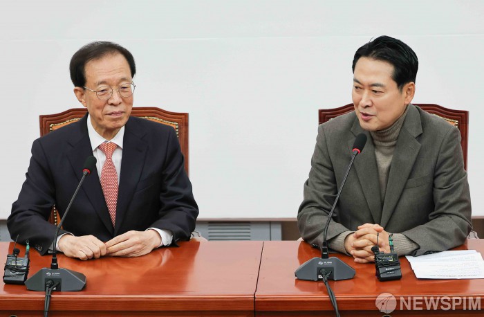 [서울=뉴스핌] 윤창빈 기자 = 장동혁 국민의힘 대표가 16일 서울 여의도 국회에서 이석연 국민통합위원장을 접견해 발언하고 있다. 2025.12.16 pangbin@newspim.com