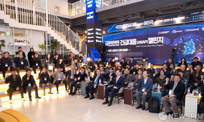 [서울=뉴스핌] 구혁채 과학기술정보통신부 제1차관이 16일 서울 성동구 KT&G상상플래닛에서 열린 국민안전 긴급대응(ASAP) 챌린지에서 참석자들과 기념촬영을 하고 있다. [사진=과학기술정보통신부] 2025.12.16 photo@newspim.com