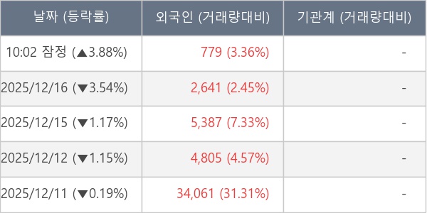 [장중수급포착] 코아시아, 외국인 9일 연속 순매수행진... 주가 +3.88%