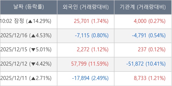[장중수급포착] 아우토크립트, 외국인/기관 동시 순매수… 주가 +14.29%
