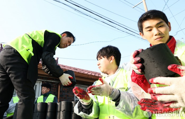 [고양=뉴스핌] 최지환 기자 = 장동혁 국민의힘 대표가 17일 오전 경기 고양시 화전마을에서 연탄봉사를 하고 있다. 2025.12.17 choipix16@newspim.com