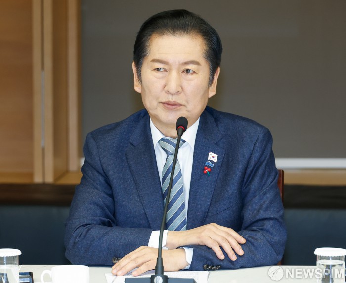 [서울=뉴스핌] 류기찬 기자 = 정청래 더불어민주당 대표가 16일 오전 서울 중구 대한상공회의소에 열린 '더불어민주당-대한상공회의소 정책간담회'에서 인사말을 하고 있다. 2025.12.16 ryuchan0925@newspim.com