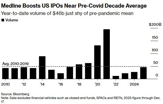 메드라인의 데뷔는 여러 오랫동안 기다려온 상장을 지연시킨 시장 혼란 이후 미국 IPO 일정을 대미를 장식하며 마무리했고, 역대 최대 규모가 될 것으로 예상되는 잠재적 블록버스터 스페이스X 데뷔를 필두로 한 2026년의 대풍년 무대를 마련했다.
